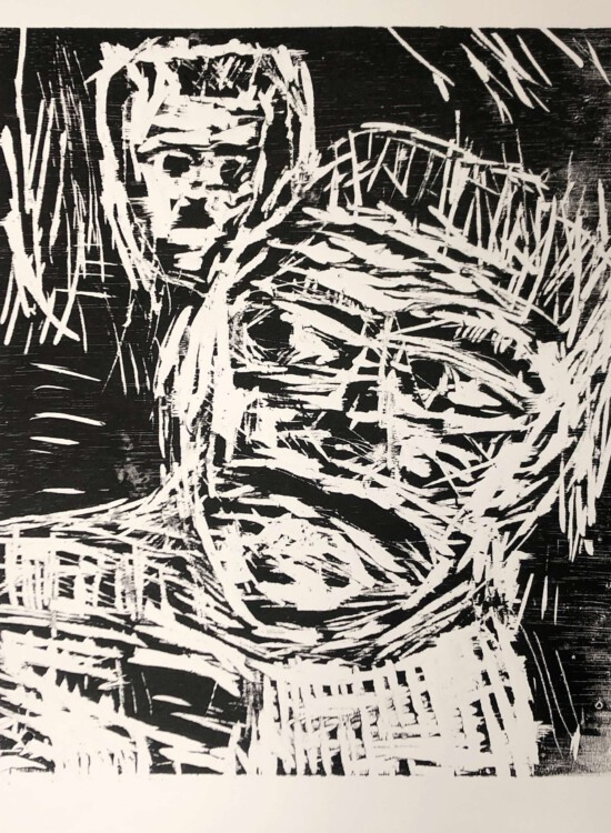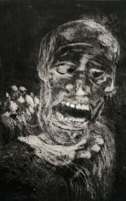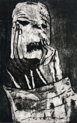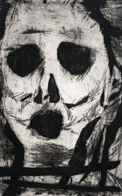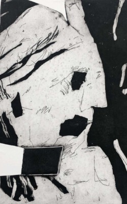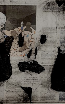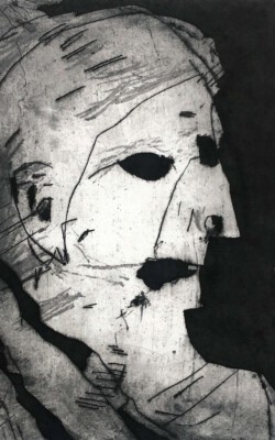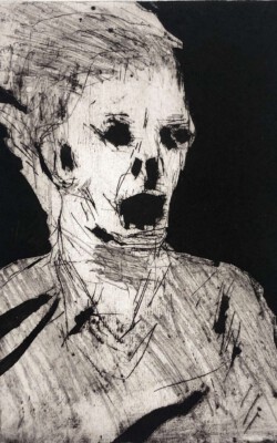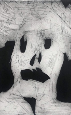 De voorlaatste is een mezzotint print op een zink plaat, de laatste heb ik een paar jaar geleden, in mijn Duitse tijd, bij mijn actief zijn in de werkplaats van Walter Hanusch, in Frankfurt gemaakt. De techniek van die koperen plaat is ets, droge naald en aquatint met gestrooide hars